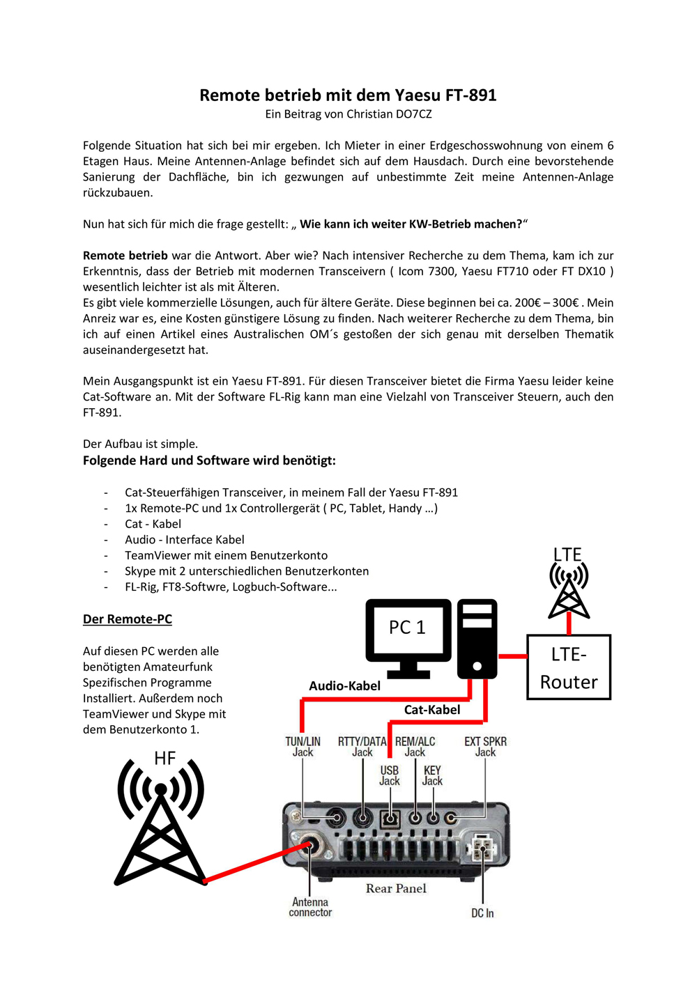 Hier zeige ich meine Remote-Station, den Yaesu FT-891, den Antennenschalter und die technische Umsetzung.